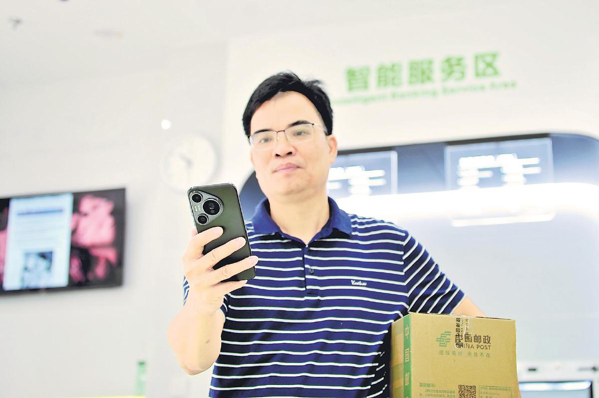 支局周圍的商戶常常會來自助寄件。在附近做了十多年電子產(chǎn)品生意的吳先禮是這個網(wǎng)點的??汀Uf起網(wǎng)點的變化,他很有感觸:“以前來這個營業(yè)點寄東西,人多的時候要等不少時間;現(xiàn)在我提前在手機上下單,來了直接寄,像是自己家里有郵局,非常方便!”