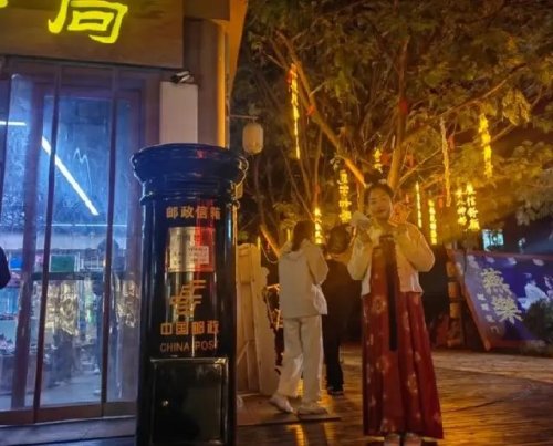 洛陽漢服郵局推出的妝造更吸睛,沉浸式體驗(yàn)精致華裳的同時(shí),感受一下中國傳統(tǒng)美學(xué)與文化魅力。拍完美美的照片,也不用擔(dān)心來不及歸還服裝,到附近的郵政營業(yè)廳寄回去就可以。