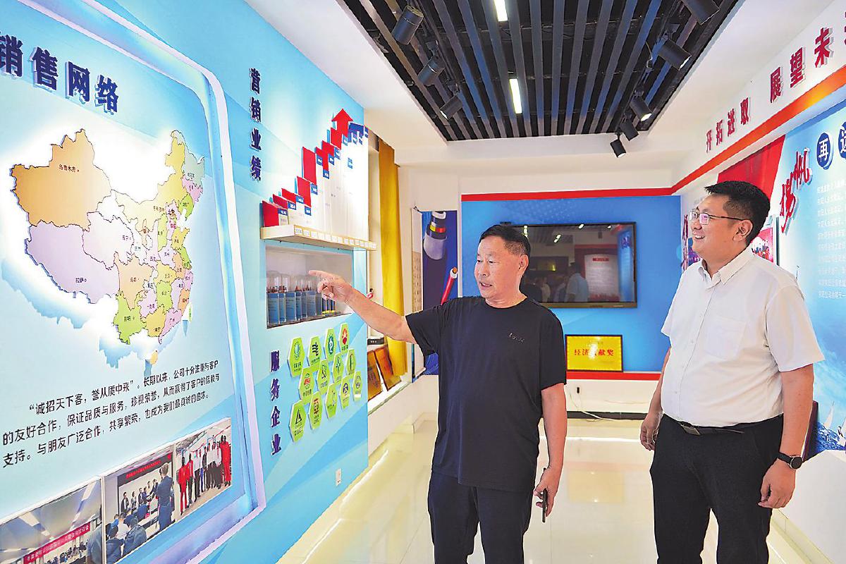 牛玉祥(左)與蘇伯寅回顧京陽(yáng)立津線纜有限公司發(fā)展歷程。