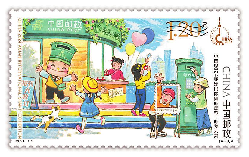 中國(guó)郵政定于2024年11月29日發(fā)行2024-27J《中國(guó)2024亞洲國(guó)際集郵展覽》紀(jì)念郵票一套4枚、小型張1枚。郵票名稱分別為“鼎啟新章”“滬韻流光”“郵夢(mèng)未來(lái)”“郵博古今”,小型張名為“浦江朝暉”。郵票設(shè)計(jì)者分別為夏競(jìng)秋、王晨、景紹宗、潘虎,小型張?jiān)O(shè)計(jì)者為王虎鳴。