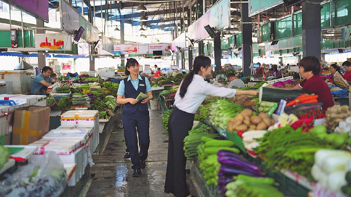 上午9點(diǎn),陽(yáng)光透過(guò)市場(chǎng)的棚頂,斑駁地灑落在濕漉漉的地面上,空氣中彌漫著新鮮蔬菜和水果的香氣。在廣東省深圳市龍華區(qū)觀瀾綜合菜市場(chǎng),人潮開(kāi)始涌動(dòng),一座城市剛剛醒來(lái)。深圳市龍華區(qū)郵政分公司的“郵金智聯(lián)隊(duì)”成員手持宣傳單,向菜攤逐個(gè)推介著。