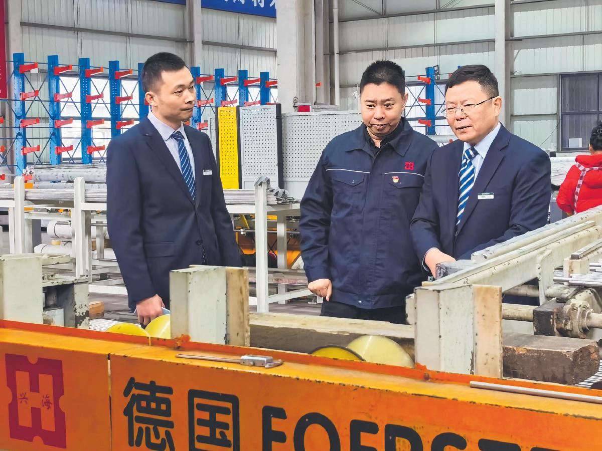 泰州市分行工作人員到江蘇興海特鋼有限公司渦流探傷檢測車間了解生產(chǎn)運行情況。