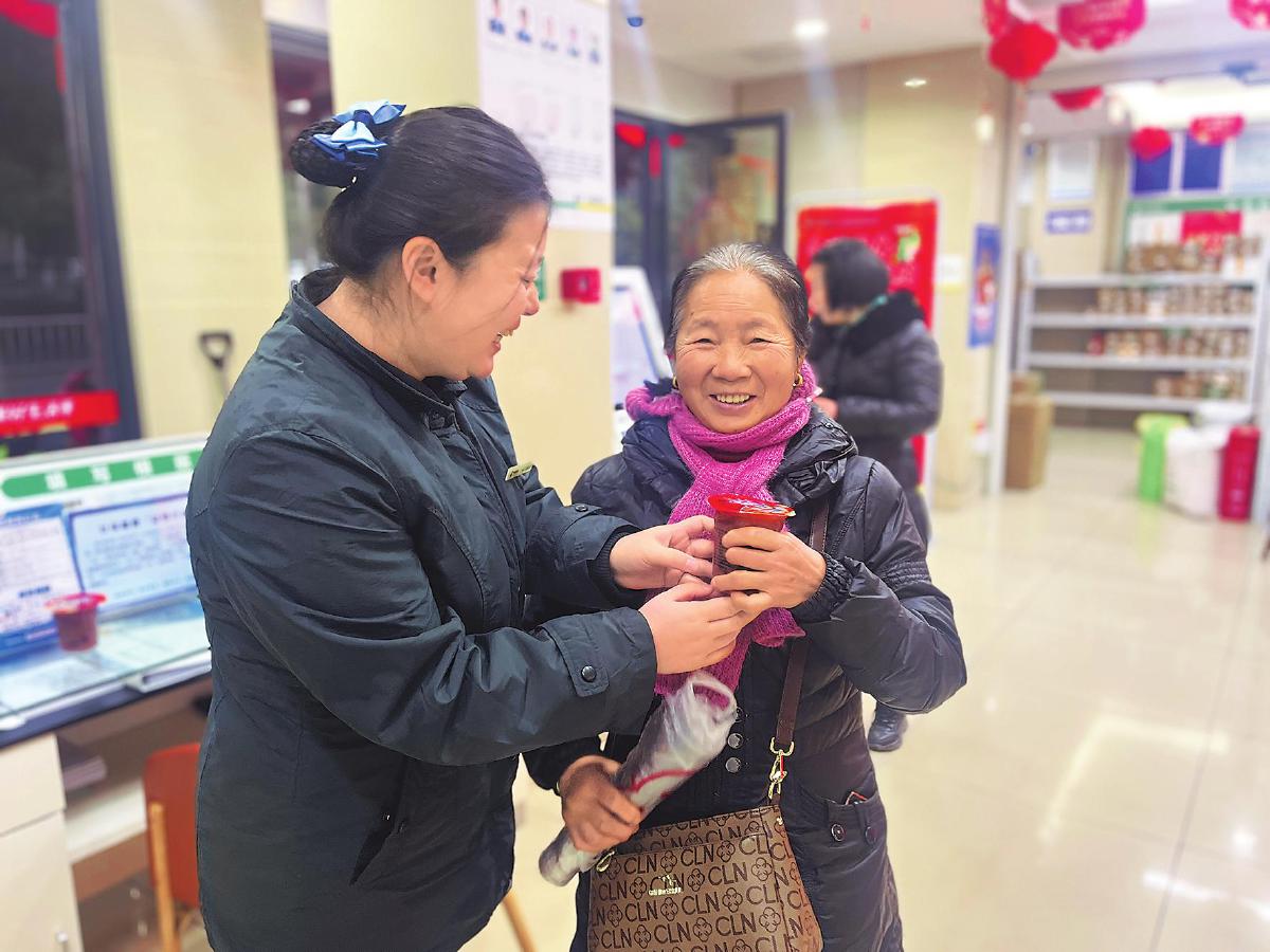 四川省內江市市中區(qū)郵政分公司各金融網(wǎng)點開展了“一杯臘八粥 溫暖度‘臘八’”客戶回饋活動,工作人員為當天到訪的150位客戶送上臘八粥和新年祝福,歡聲笑語間拉近了網(wǎng)點與客戶的距離?!踔x莉 攝影報道