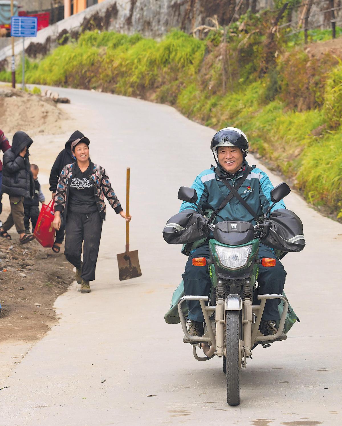 每一次郵件妥投,鄉(xiāng)親們和桑南才的臉上都會(huì)洋溢著幸福的笑容?!跣氯A社記者 李賀 攝