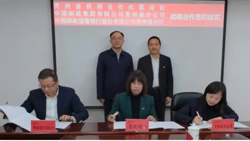 2月11日,中國郵政集團(tuán)有限公司貴州省分公司、中國郵政儲(chǔ)蓄銀行股份有限公司貴州省分行與貴州省供銷合作社簽署戰(zhàn)略合作協(xié)議。省郵政分公司黨委書記、總經(jīng)理董文,省供銷社黨組書記、理事會(huì)主任王鎮(zhèn)義,郵儲(chǔ)銀行省分行黨委委員、副行長陳波出席簽約儀式并致辭。省供銷社黨組成員、理事會(huì)副主任馮霞,省郵政分公司黨委委員、副總經(jīng)理張霞,郵儲(chǔ)銀行省分行黨委委員、副行長陳波分別代表各方簽約。