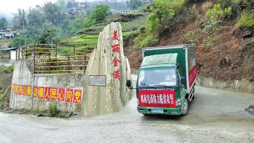 郵政運(yùn)輸車送貨進(jìn)村。