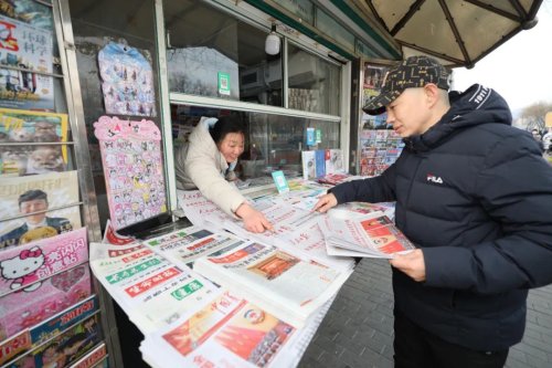 早8點(diǎn),在北京西城區(qū)廣安門外大街一處報(bào)刊亭的“兩會(huì)專架”前,已有市民駐足翻閱專題報(bào)道。頭版醒目的全國政協(xié)十四屆三次會(huì)議在京開幕的消息吸引往來人群駐足瀏覽。