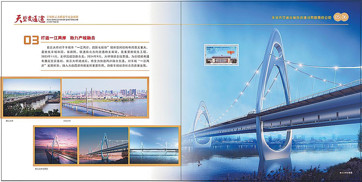 1月23日上午,江西省豐城市紫云大橋正式通車。紫云大橋橫跨贛江,解決了兩岸百姓的交通難題,對(duì)豐城市“一江兩岸、四區(qū)七板塊”城市空間結(jié)構(gòu)布局意義重大,真正實(shí)現(xiàn)了“天塹變通途”。在城市發(fā)展的關(guān)鍵節(jié)點(diǎn),豐城市郵政分公司充分發(fā)揮郵政獨(dú)有的文化傳播優(yōu)勢(shì),積極投身其中,經(jīng)過(guò)三個(gè)月的走訪、策劃與制作,成功開發(fā)豐城紫云大橋通車紀(jì)念郵冊(cè)項(xiàng)目,一次性制作紀(jì)念郵冊(cè)1000冊(cè),為紫云大橋通車紀(jì)念貢獻(xiàn)郵政力量。