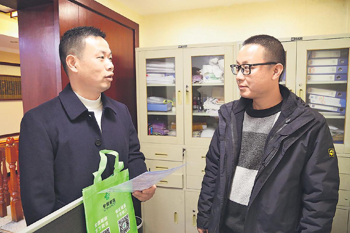 羅攀(左)登門(mén)拜訪客戶(hù)。