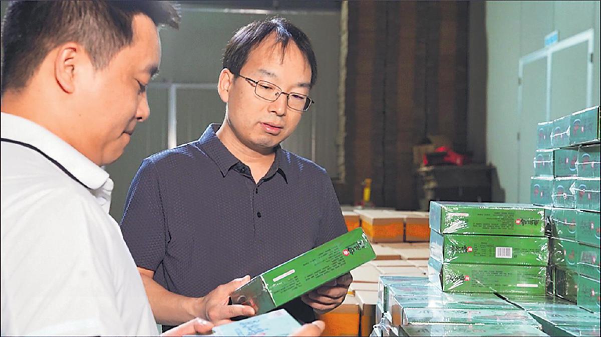 張國才(右)為直播活動選品。