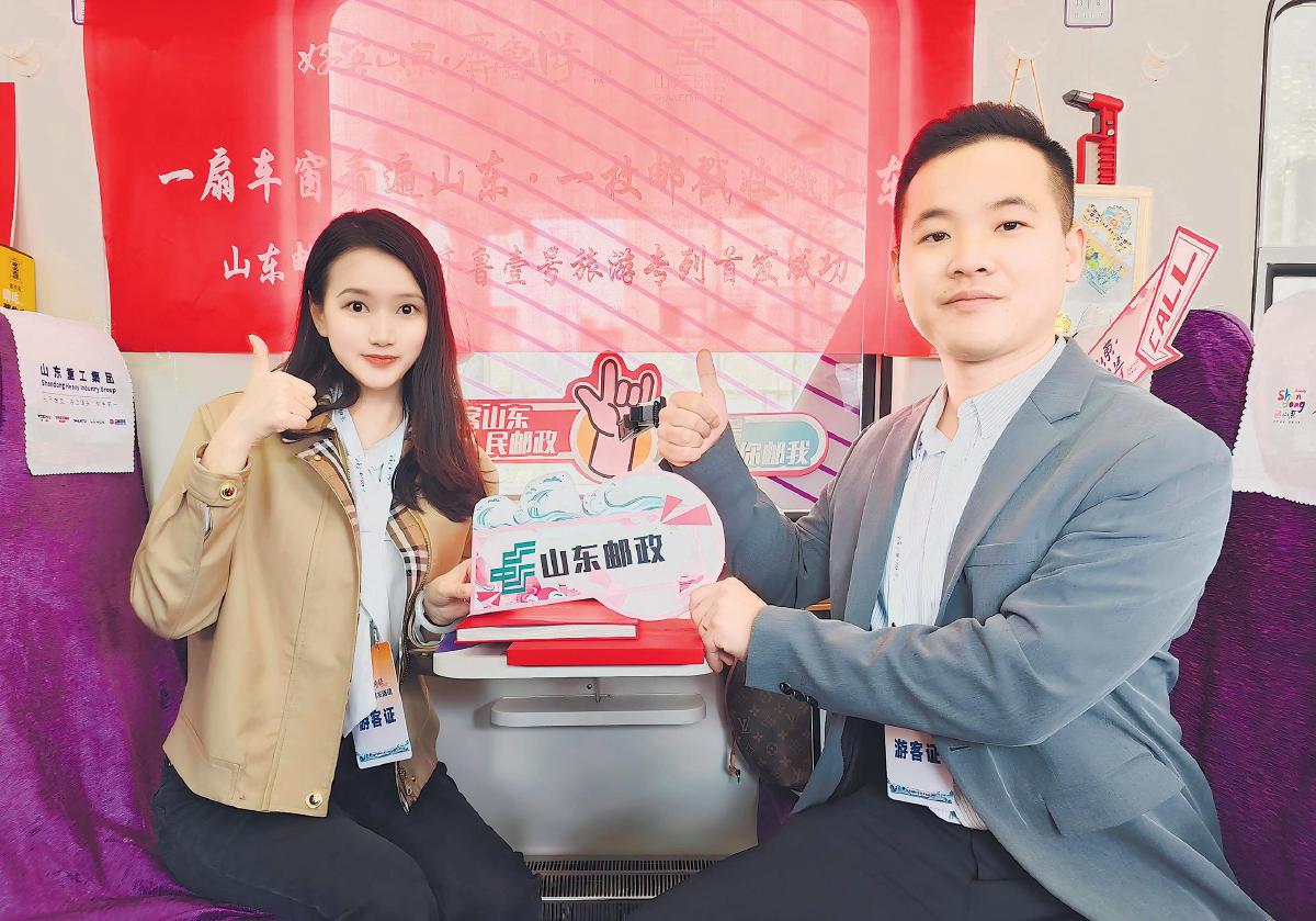 4月10日,“好客山東·齊魯1號(hào)”旅游專列首發(fā)。山東省濟(jì)南市郵政分公司以“一扇車窗看遍山東、一枚郵戳收藏山東”為主題,在車內(nèi)設(shè)置文創(chuàng)展區(qū),展出40余款融合山東文旅特色的集郵文創(chuàng)產(chǎn)品,吸引了參加首發(fā)活動(dòng)的山東省有關(guān)部門領(lǐng)導(dǎo)駐足參觀并給予高度評(píng)價(jià)。