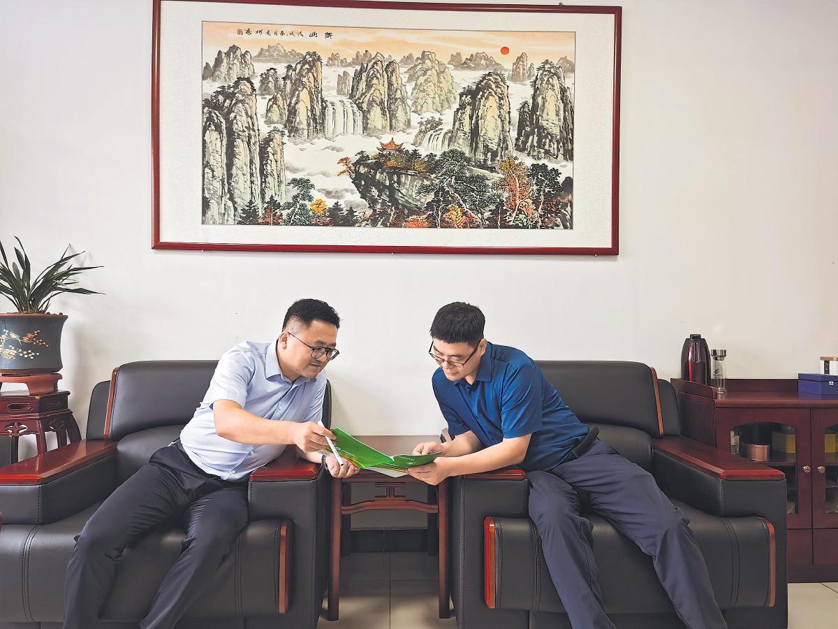 趙晨(左)走訪客戶,調(diào)研業(yè)務(wù)市場。