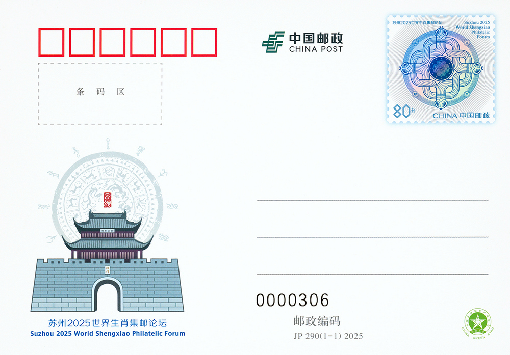 中國(guó)郵政定于2025年2月15日發(fā)行《蘇州2025世界生肖集郵論壇》紀(jì)念郵資明信片1套1枚。詳情如下: